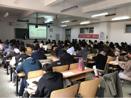 第一教学楼301教室举行,金融学教研室主任郝志军教授主持宣讲会,金融学专业四年级一百余名同学参加了本次活动。