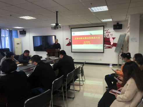 在综合楼806召开改革创新发展动员推进大会,会议的主题是:认真学习贯彻党的十九届六中全会精神 推动学院改革创新发展。会议由院长牛建高主持,党委书记李国柱、党委副书记赵明、学院党委委员及全体教职工参加了会议。会议分两个阶段,第一个阶段由牛建高向全体老师宣讲党的十九届六中全会精神;第二个阶段,由牛建高解读学院近期制定的相关文件政策。