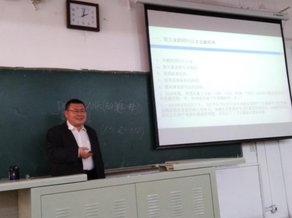 “行长进课堂”——廊坊银行中山西路支行王本华行长在给同学们讲授商业银行对公授信
