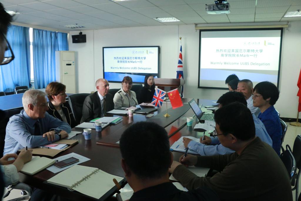 与厄尔斯特大学合作举办的金融学专业中英合作办学项目取得的成果,介绍了项目正面临的教育部评估的情况。他指出,自2012年起,双方友好合作不断深化,师生交流不断加强,友谊愈加深厚。今年2-4月,经贸学院三名教师圆满完成了在厄尔斯特大学为期3个月的访学研修工作,此次访学也为双方深入开展合作办学项目、开拓合作新领域奠定了扎实的基础。双方还就项目的课程设置、英方教师选聘、教学方法、学生管理等问题广泛交换了意见。