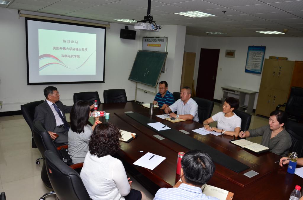 下午4:30在综合楼806会议室, 赵穗生教授与经贸学院教师和研究生进行了题为“美国的中国研究发展及其问题,兼谈在英文中国研究SSCI刊物发文注意事项”的座谈。首先,经贸学院院长刘德智教授对赵穗生教授的到来表示热烈欢迎,并介绍了河北地质大学及经贸学院的历史和现状,赵教授也介绍了美国丹佛大学及约瑟夫﹒科贝尔国际关系学院和《当代中国》期刊的有关情况,并与广大师生就感兴趣话题进行了充分的沟通和互动。