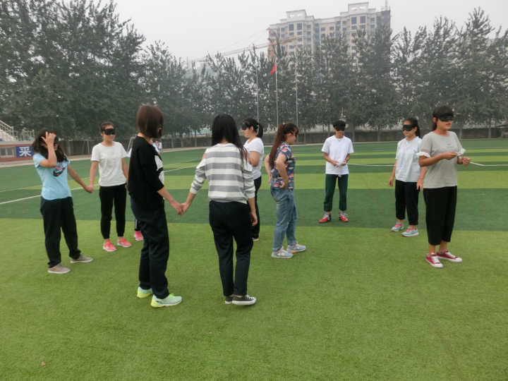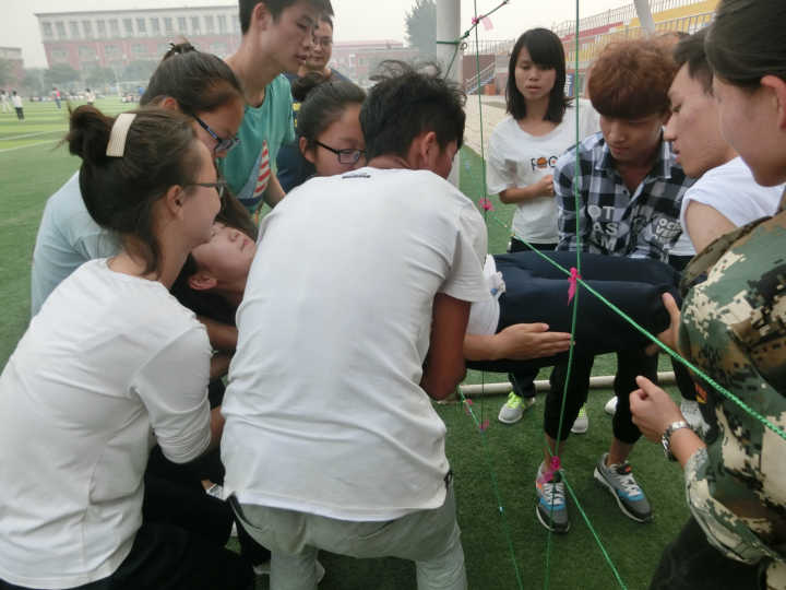 本次素质拓展以班为单位开展活动,设置了“盲人方阵”、“电网”、“驿站传书”等非常具有创意的项目,在拓展训练项目中寻找合作的黄金点,不断形成一种默契,这种关系由原来松散的个体磨合成为一个能够冲破任何防线的组合体。项目之间还加入游戏环节进行适当放松和娱乐,如:“桃花朵朵开”,“大风吹”等游戏。游戏过程中充满了欢声笑语。在9月24日和25日晚,各分队进行团队展示,队员们密切配合,积极参与,通过自己团队独特的形式展现出最完美的团队。
