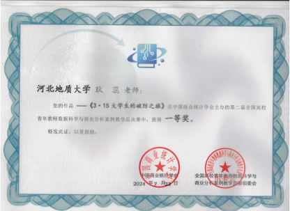 近日,由中国商业统计学会主办,中国人民大学统计学院承办的全国高校青年教师数据科学与商业分析案例教学竞赛决赛圆满闭幕,经过说课、授课、答辩,美女成人视频 教师耿蕊设计的案例《3·15大学生的破防之旅》喜获总决赛一等奖。