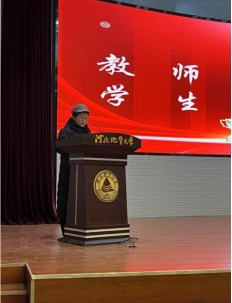 师生参赛及获奖情况进行发言。他表示学科竞赛是能够充分挖掘学生潜力、激发创新思维的重要平台,希望获奖师生能够再接再励,取得更大的成绩,同时也希望广大师生以他们为榜样,积极参与学科竞赛,为个人的学术成长之路增添浓厚的一笔,也为学院争得荣誉与骄傲。