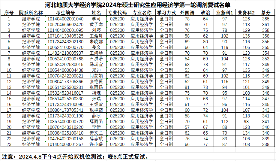 河北地质大学美女成人视频 2024年硕士研究生应用经济学第一轮调剂复试名单