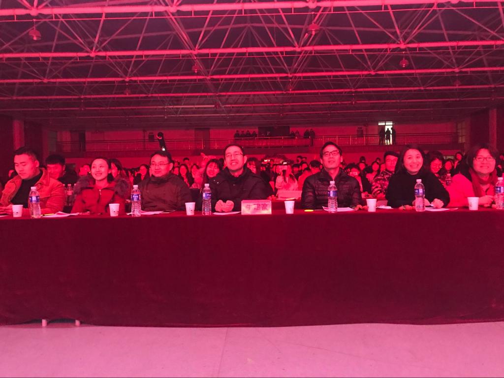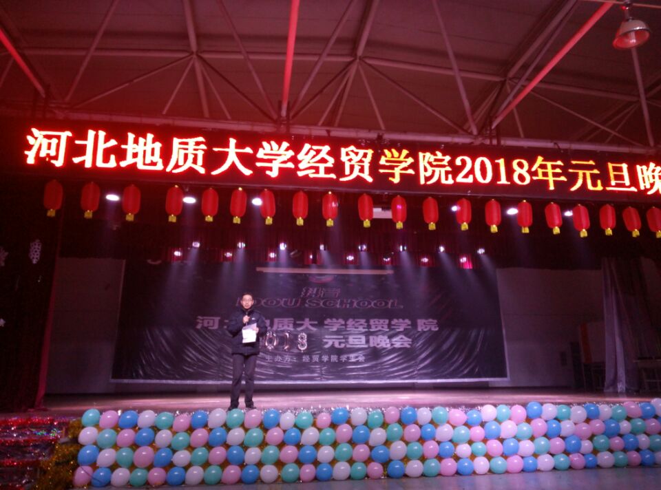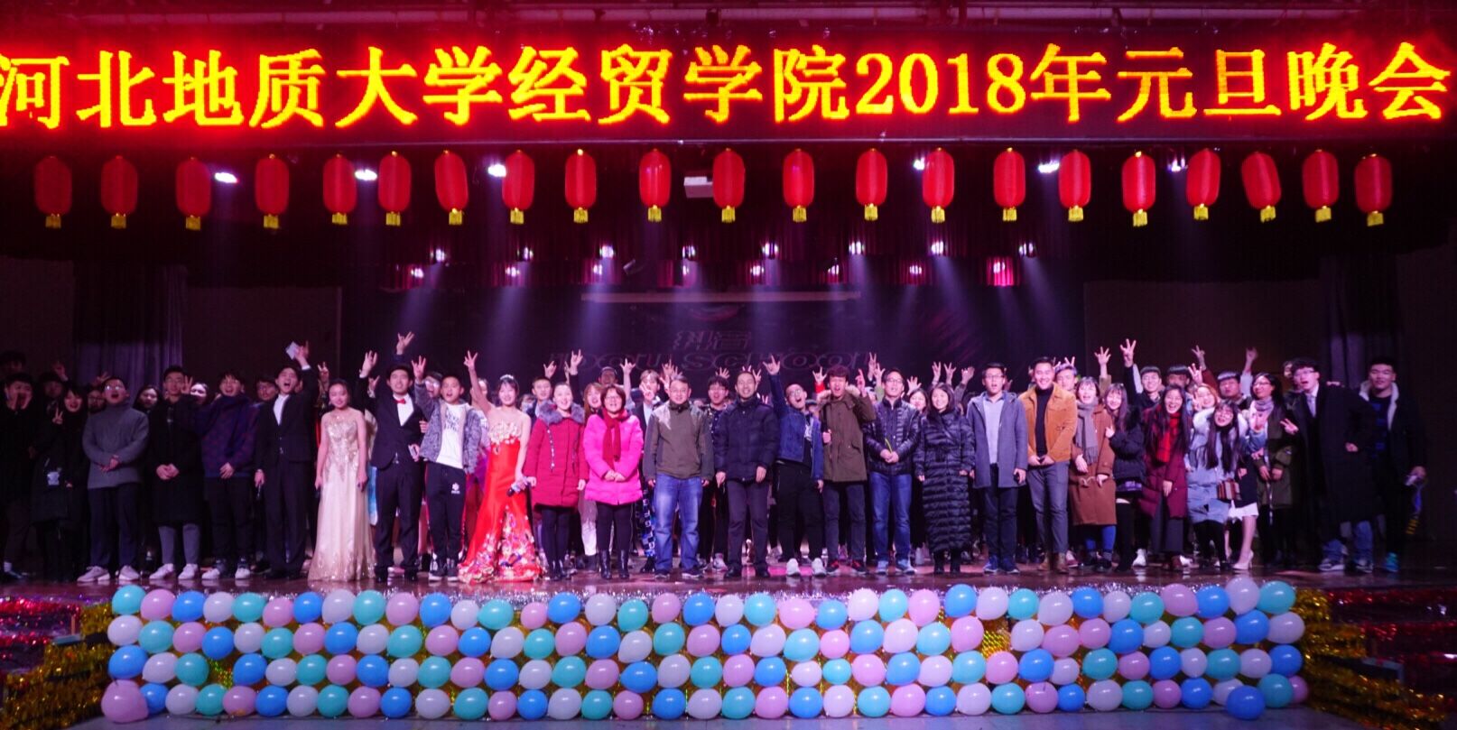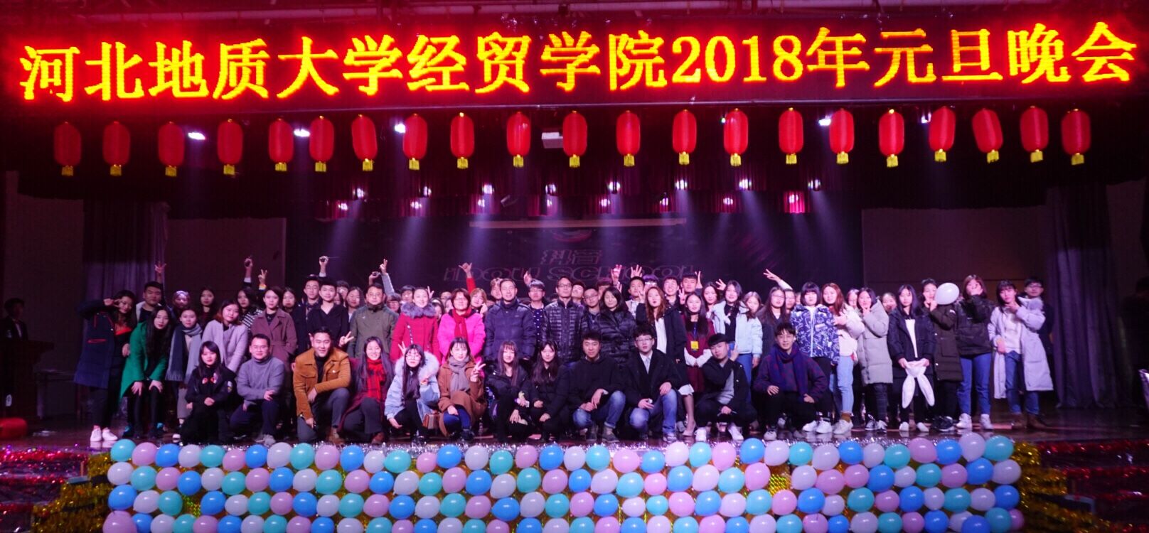 2017年12月29日晚北校区综合楼四楼经贸学院2018年元旦晚会隆重举行。应邀嘉宾经贸学院党委书记牛建高书记,金融教研室主任郝志军教授,张国丰老师和崔文静老师以及辅导员郭晓娜和蔺丽军老师,与2017级新生一同观看了这场青春盛宴。
