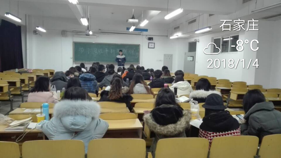2018年1月4日早上7:00,河北地质大学经贸学院学生党支部在第一教学楼801教室进行了关于学习‘习近平新年贺词:三个信念’的思想会议。参加本次会议的同志有经贸学院学生党支部全体党员以及积极分子。