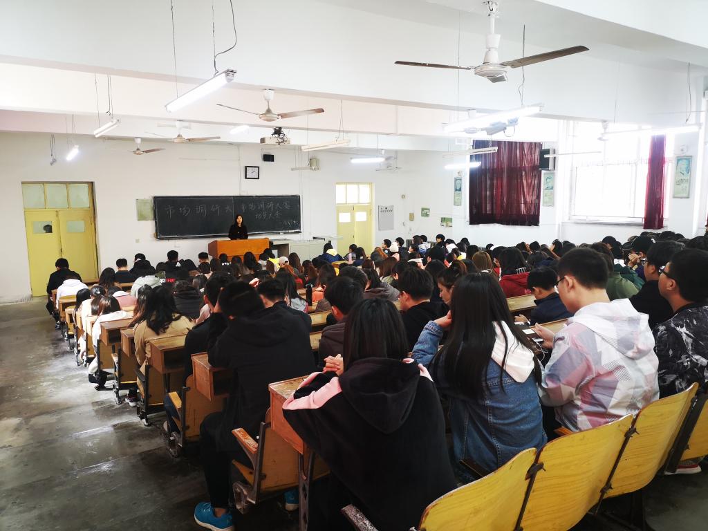 当日下午两点,同学们陆续到场,辅导员郭晓娜上台发言。首先,郭晓娜老师为同学们简单介绍了市场调研大赛和美女成人视频