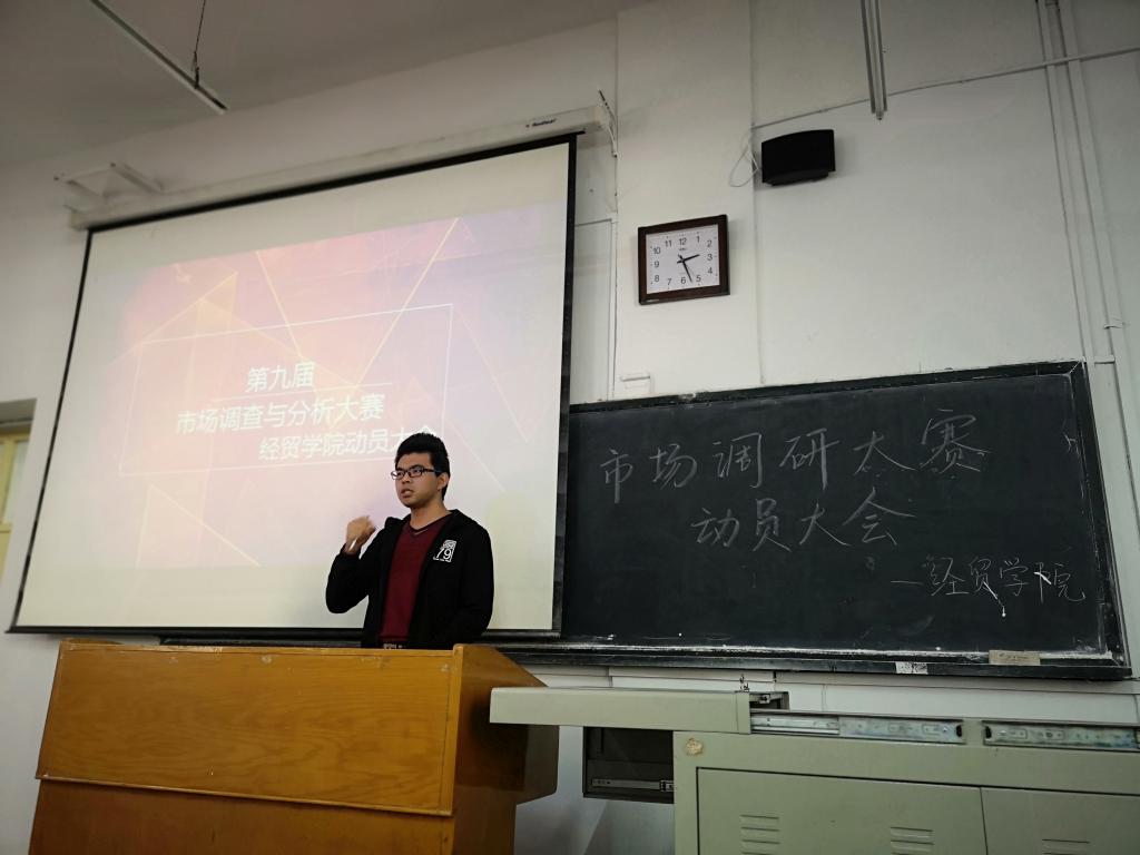 接下来,市场调查与分析大赛国赛一等奖获得者柳永辉学长上台发言,为同学们解答关于参赛流程和具体要求的疑惑,在组队、选题、团队分工等方面结合自身经历提出了自己的建议。随后学长发表了自己参赛的感想,讲述了参加过市场调研大赛的益处和收获,渐渐消除了大家心中对大赛的疑虑。