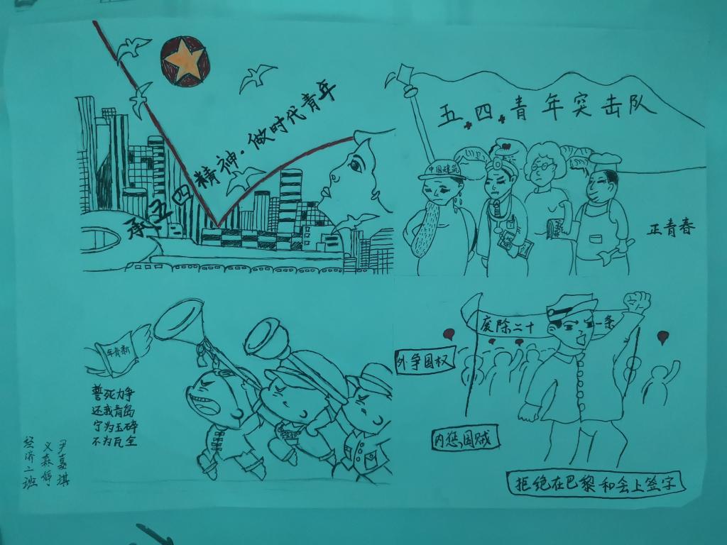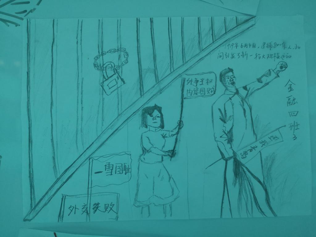 活动第三部分通过画“连环画”的形式增加活动的趣味性。“连环画”能有效结合新时代的青年特色,阐释五四运动的当代表达,让学生们发挥自己的个性表现心目中的五四运动。连环画的内容分为若干主题,每个主题对应某个历史事件,这即考验学生们的想象力,也考验学生们对历史的悟性,活动后学生们对五四运动前因后果有了较为清晰的认识。