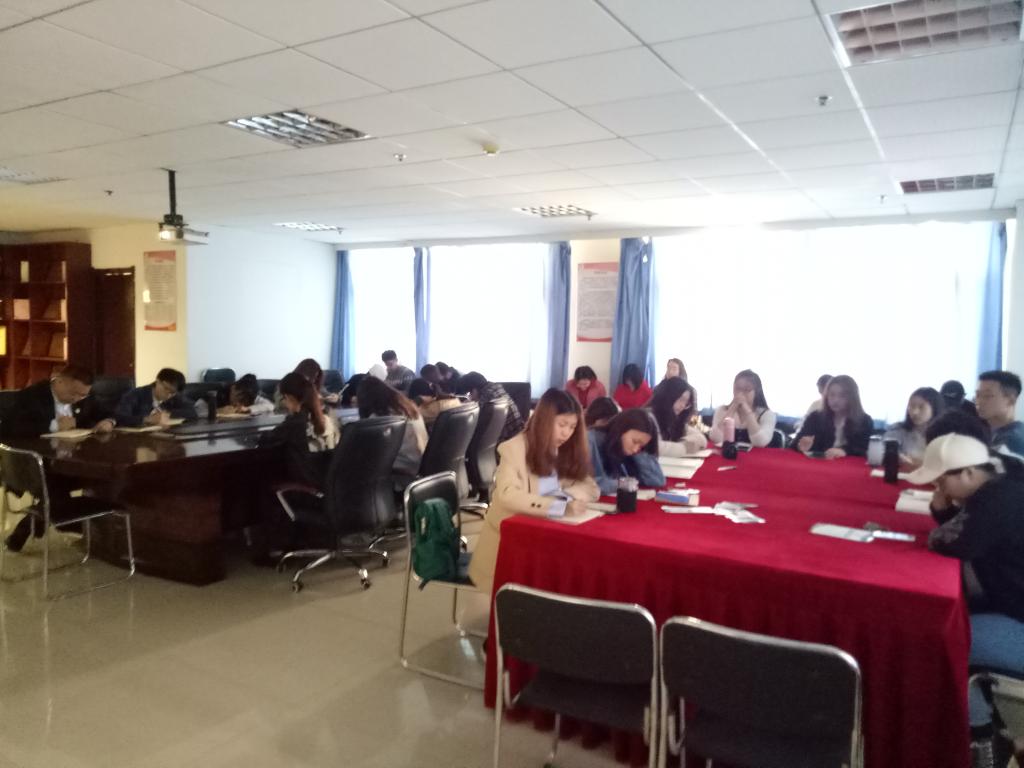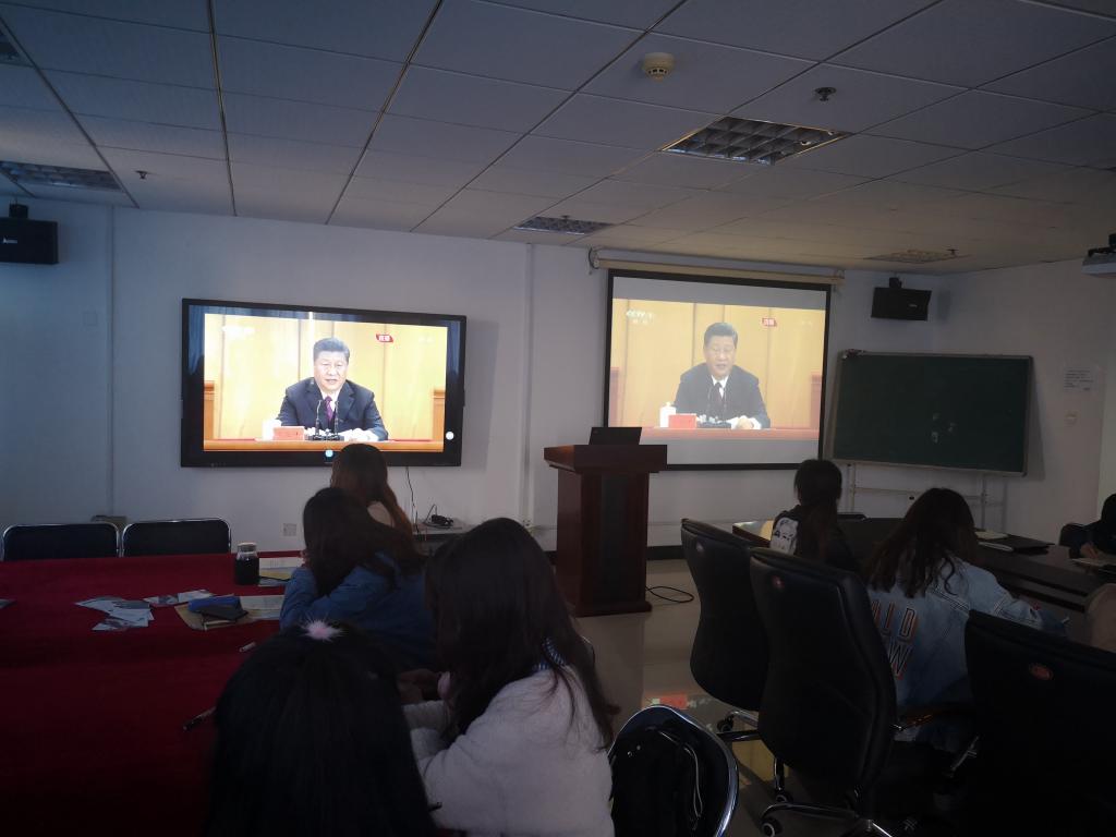 2019年4月30日上午经贸学院学生第一、第二党支部组织党员、积极分子在综合楼806观看习近平总书记纪念五四运动100周年讲话并对总书记讲话进行热烈讨论。