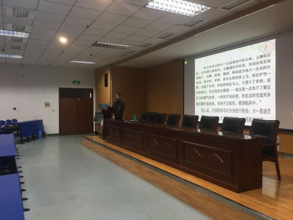 为切实提高“不忘初心、牢记使命”主题教育效果,培养和增强2019级新生的专业和学习兴趣,引导学生做好大学四年的学习规划,2019年10月11日晚上,学院党委书记牛建高以“大学生活,你怎样度过?”为题,在北校区图书馆401为2019级全体新生做了一场内容丰富的讲座。