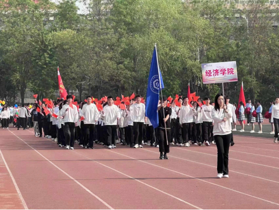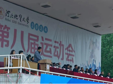 师生欢聚操场,携手参加河北地质大学第八届运动会。