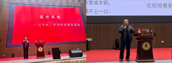 李庆雪以“亲属+宣讲人”的双重身份,用生动语言与真挚情感,带领师生回溯党员英雄李狄三与进藏先遣连的奋斗征程。李庆雪详细讲述了1950年李狄三率进藏先遣连从新疆进军西藏阿里的事迹——在极端恶劣的自然环境与复杂局势下,李狄三带领队伍严守民族政策、坚守使命担当,以生命践行入党誓词,生动诠释了共产党人“为人民谋幸福、为民族谋复兴”的初心。分享中,李庆雪结合珍贵历史细节,从英雄的革命初心、坚韧意志到坚定信仰,全方位展现其忠诚于党、服务人民、甘于奉献的崇高品格,在场师生深受触动,多次以掌声表达对英雄的敬意与缅怀。