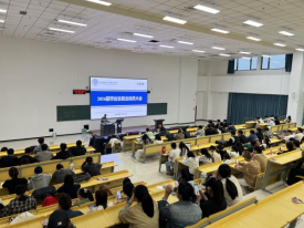 随后,赵明副书记深入分析经济学类专业就业形势,倡议毕业生“就业要趁早,行动要提前,秋季招聘会能签就签”。他提到,秋招岗位数量多、质量高,企业录用流程高效,且更倾向锁定优质生源,春招多为补缺,并结合学院就业案例鼓励学生合理评估自身条件、选择适配岗位。田杰副院长则聚焦考研群体,不仅详细介绍学校研究生专业目录、招生政策,还结合历年考研报考率、面试通过率及调剂录取案例等数据,为有志考研学生提供权威解读与备考指导;同时,他着重阐述学院在考研辅导中的师资、资料等优势,并明确学院将为有出国升学需求的同学提供推荐信撰写、申请流程指导等助力,全方位支持学生升学规划。孙凯老师结合往届毕业生数据,通过考研人数比例、就业去向比例图等可视化形式,帮助学生明晰升学就业整体趋势、找准自身定位。