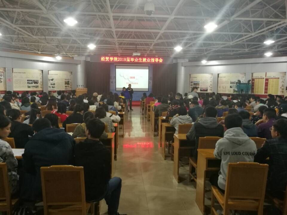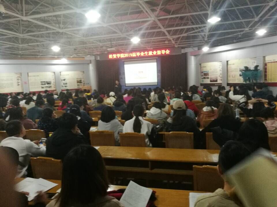 2018年10月25日,经贸学院2019届毕业生就业指导讲座在科技报告厅召开。由辅导员赵明副教授主讲,经贸学院2019届全体毕业班学生参加了讲座。
