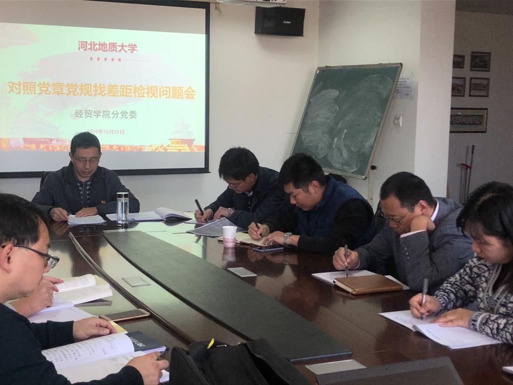 根据学院主题教育工作安排,10月31日下午,经贸学院党委书记牛建高在综合楼8楼学术小讲堂主持召开分党委领导班子检视问题找差距专题会议。校主题教育领导小组办公室成员孙永义同志到会指导。副院长李国柱、副书记郭宏以及学院党委委员、全体党员参加了会议。