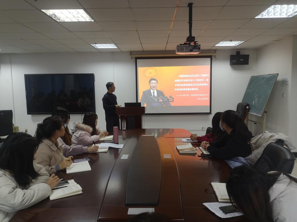 牛建高分别从“我国经济已由高速增长阶段转向高质量发展阶段”、“坚持适应把握引领经济发展新常态”、“把推进供给侧结构性改革作为经济工作的主线”、“建设现代化经济体系”、“使市场在资源配置中起决定性作用,更好发挥政府作用”等五个进行了全面讲解,让学生们更加深入地了解我国国民经济和社会发展第十四个五年规划和2035年远景目标。