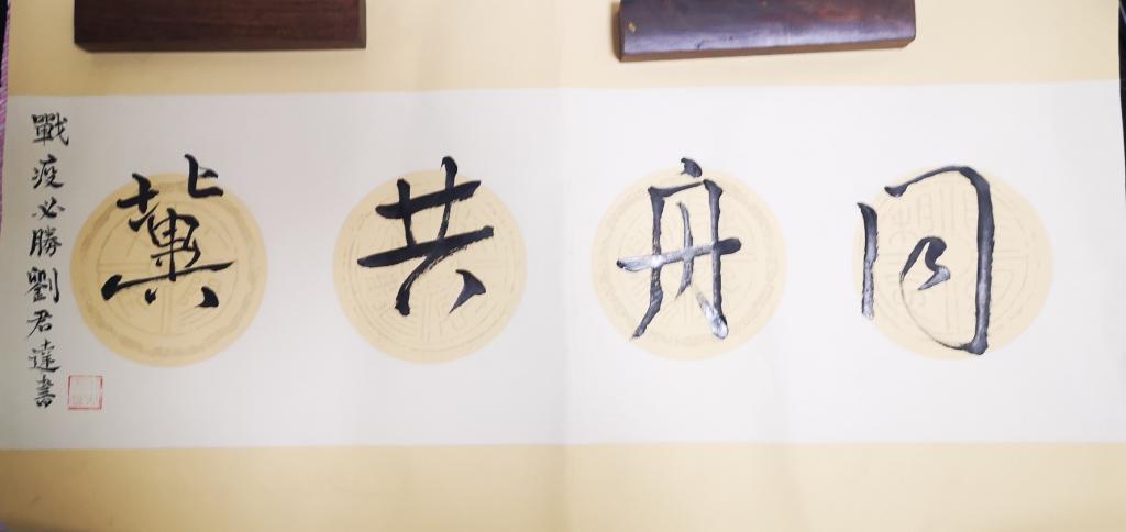 全体党员将自身的热血与决心以书法、绘画的形式呈现于纸面上,用自己的方式表达着对抗疫医护人员的敬意以及抗疫必胜的决心。