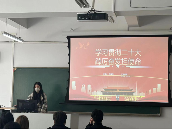 连清同学向我们介绍了许其亮、孙春兰、杨洁篪、杨晓渡、陈希五位同志提出的关于二十大的观点,分别是:如期实现建军一百年奋斗目标,办好人民满意的教育,推动构建人类命运共同体,完善党的自我革命制度规范体系,建设堪当民族复兴重任的高素质干部队伍。通过学习,我们对于二十大精神的解读更加深入了。