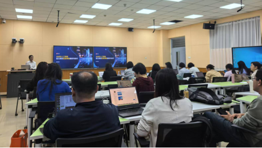 教学副院长牛晓耕主持,在简要介绍教学质量文化月活动安排主旨和后续课程建设规划后,由超星集团培训讲师做了题为“生成式人工智能助力高校智慧课程建设与运行”的报告,为各课程建设团队和任课教师打开了智慧课程建设思路和图景。